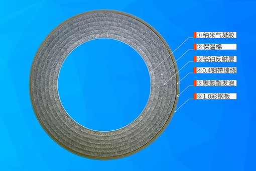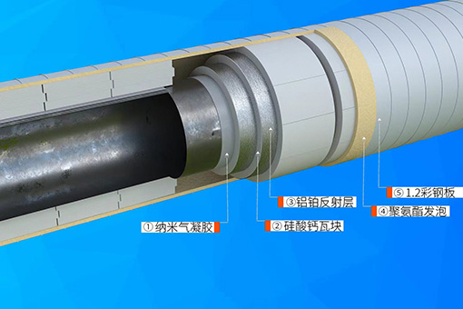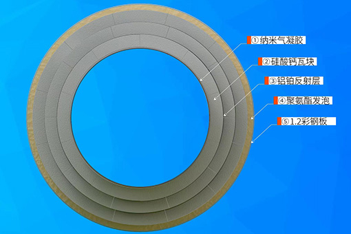 外保溫層選用硬質聚氨酯泡沫材料,耐熱性較低但隔熱保溫性能很好,同時聚氨脂發(fā)泡的延展性具備穩(wěn)固作用,解決了傳統(tǒng)保溫結構因熱脹冷縮產(chǎn)生和增大塊間空隙的問題。